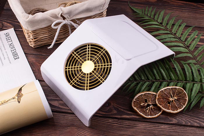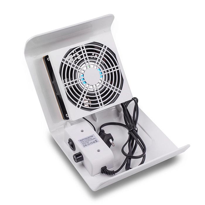 Пылесос имеет современный дизайн, форма которого выполнена в форме «домика», идеально удерживает руки клиента и размещает их так, как это удобно мастеру по наращиванию ногтей.
