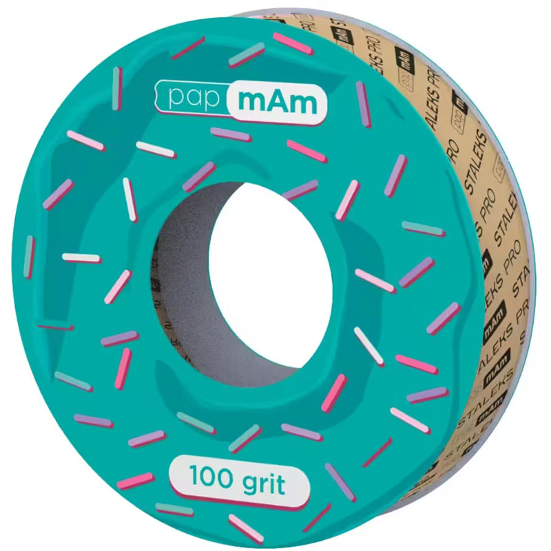 Бесклеевые сменные файлы pap mAm (пап мам) подходят для катушки с клипсой. Они надеваются на металлическую основу как чехол, полностью закрывая ее с обеих сторон и торцов. Такой принцип крепления дает мастеру еще больше уверенности в своих движениях и обезопасит клиента от случайных порезов. Лента 6 м не перфорирована - мастер может отрезать необходимое для работы количество абразива. Пилочка-основа всегда будет оставаться чистой, без остатков клея после снятия сменного файла.