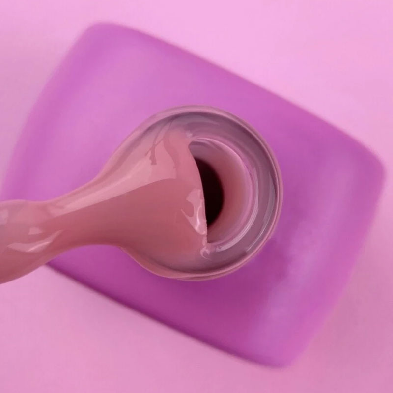 - Для адгезии нанесите Rubber base тонким слоем на всю ногтевую пластину близко к кутикуле и боковым валикам.